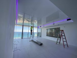 Stretch ceilings still maintain one characteristic from their original use: their versatility. They can be found in a wide array of finishes, colors, and designs, and they can also be personalized to fit any space. The sky”s the limit when it comes to variety in Stretch Ceilings, since you can also add lighting and multilevel aspects. We know this might sound overwhelming, but we can guide you through your selection if you fill out this form to book a free consultation!